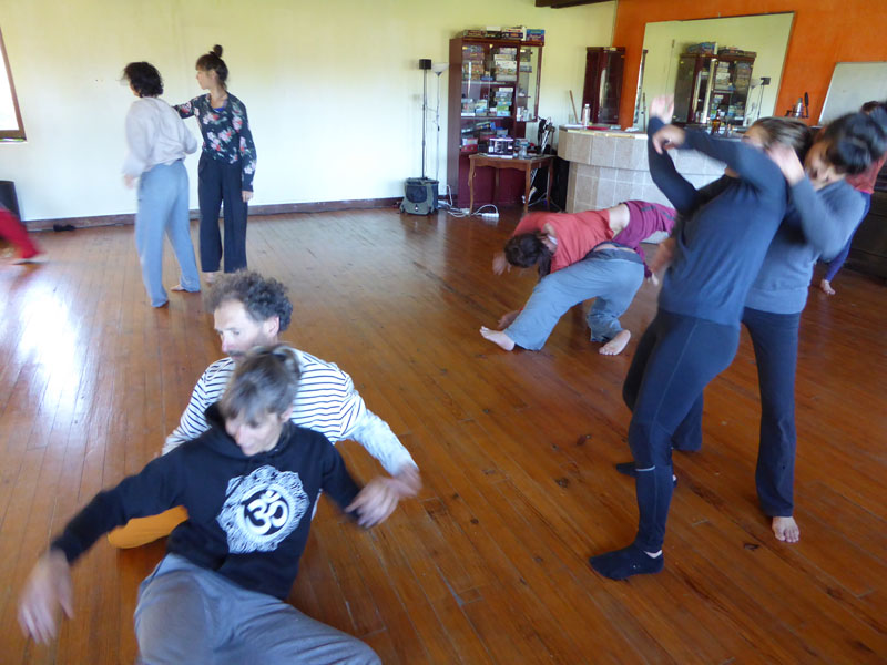Toutes et tous ont apprécié son énergie et sa pédagogie lors de ces quatre jours où nous avons exploré le corps, le mouvement, le rapport à la gravité, au sol et aux autres, dans notre “salle de danse” avec vue sur les collines.