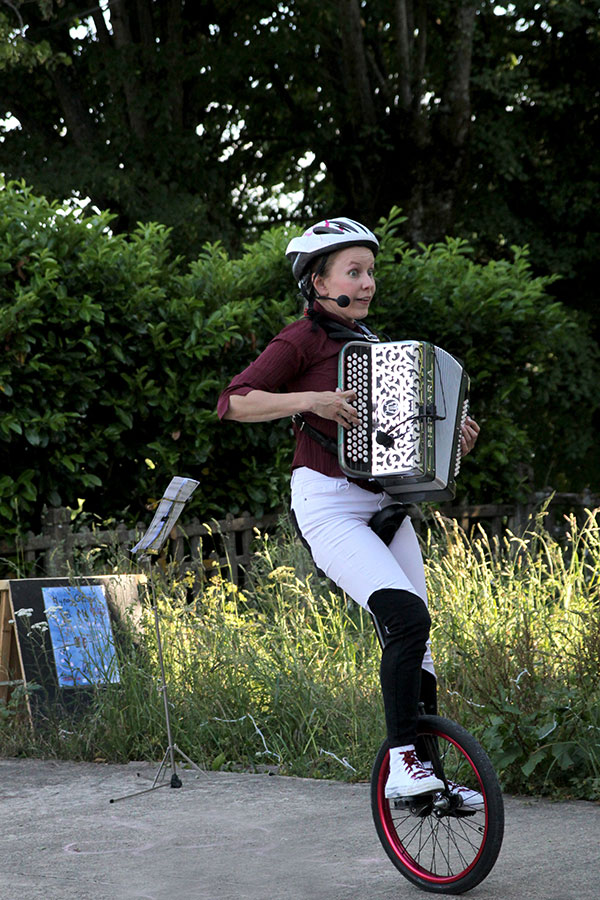 - Lucie Carbonne pour son spectacle musico-acrobatique Hippo-glisse-et-mi